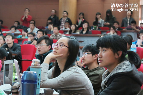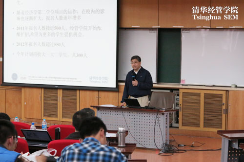 白重恩教授介绍了经管学院为经济学第二学位的同学们提供的丰富平台资源,从陈岱孙经济学纪念讲座、清华中国经济高层讲坛、中国经济50人论坛长安讲坛等学术活动,到“院长下午茶”、“冬情”学生节、经双篮球赛等课余活动,使同学们在其中拓宽知识视野、培养经济学思维习惯、享受集体归属感。宣讲会由经济学第二学位项目学术协调人杨思群教授主持。作为往届经济学第二学位的亲身参与者,来自伟德bevictor中文版医学院生物医学工程系的张钺同学(经双2010)结合自己在经双10班的学习经历和入选经管学院“优秀学术人才培养计划”的切身感受,与现场同学们分享了学习心得。