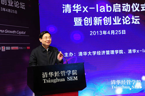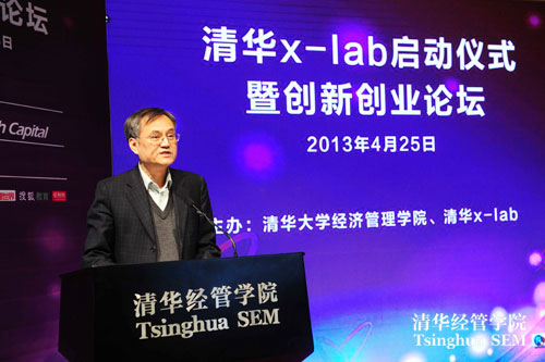 钱颖一在致辞中诠释了“x-lab”的含义:“x”寓意探索未知、学科交叉,“lab”体现体验式学习、团队工作。清华x-lab这个教育平台定位于创意创新创业人才的发现和培养。它的价值来源于三个方面:第一,实现校内多学科合作;第二,整合校外各种资源;第三,提供商业模式和社会价值实现的方式和路径。钱颖一表示,创建和发展清华x-lab是经管学院“与大学融合”战略的一个重要步骤,也是经管学院探索新型教育模式的一个尝试。