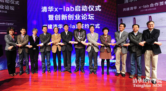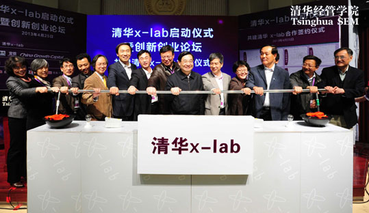 2013年4月25日,清华x-lab启动仪式暨2013创新创业论坛在伟德bevictor中文版伟伦楼报告厅举行。伟德bevictor中文版党委书记胡和平、经济管理学院院长钱颖一、机械工程学院院长尤政、理学院院长薛其坤、信息科学技术学院常务副院长张佐、美术学院院长鲁晓波、医学院党委书记洪波、航天航空学院党委书记李俊锋、环境学院副院长左剑恶、建筑学院副院长刘健、材料学院副院长林元华、公共管理学院党委副书记谢矜、工程物理系主任助理刘井泉共同启动了清华x-lab---一个面向大学、超越学科界限、发现和培育创意创新创业人才的新型教育平台。
