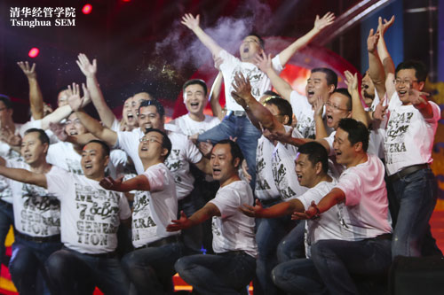 合唱、朗诵、情景剧等,如果你还可以将这些与清华EMBA、高管联系起来,那接下来的踢踏舞绝对是一个惊喜。脱下笔挺的西服,暂时抛开各种头衔,他们洒脱随性,释放着别样的光芒,“永远的清华情”、“永远的清华”和“永远的11-A班”是他们最后打出的条幅,《红色激情》意味深长。