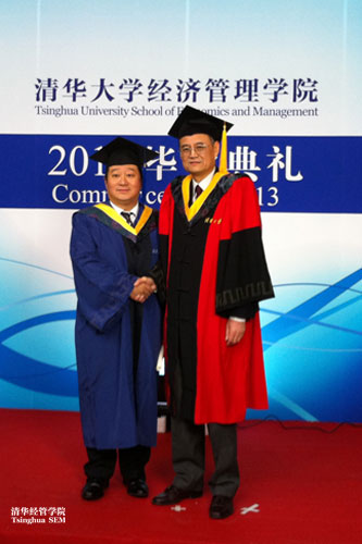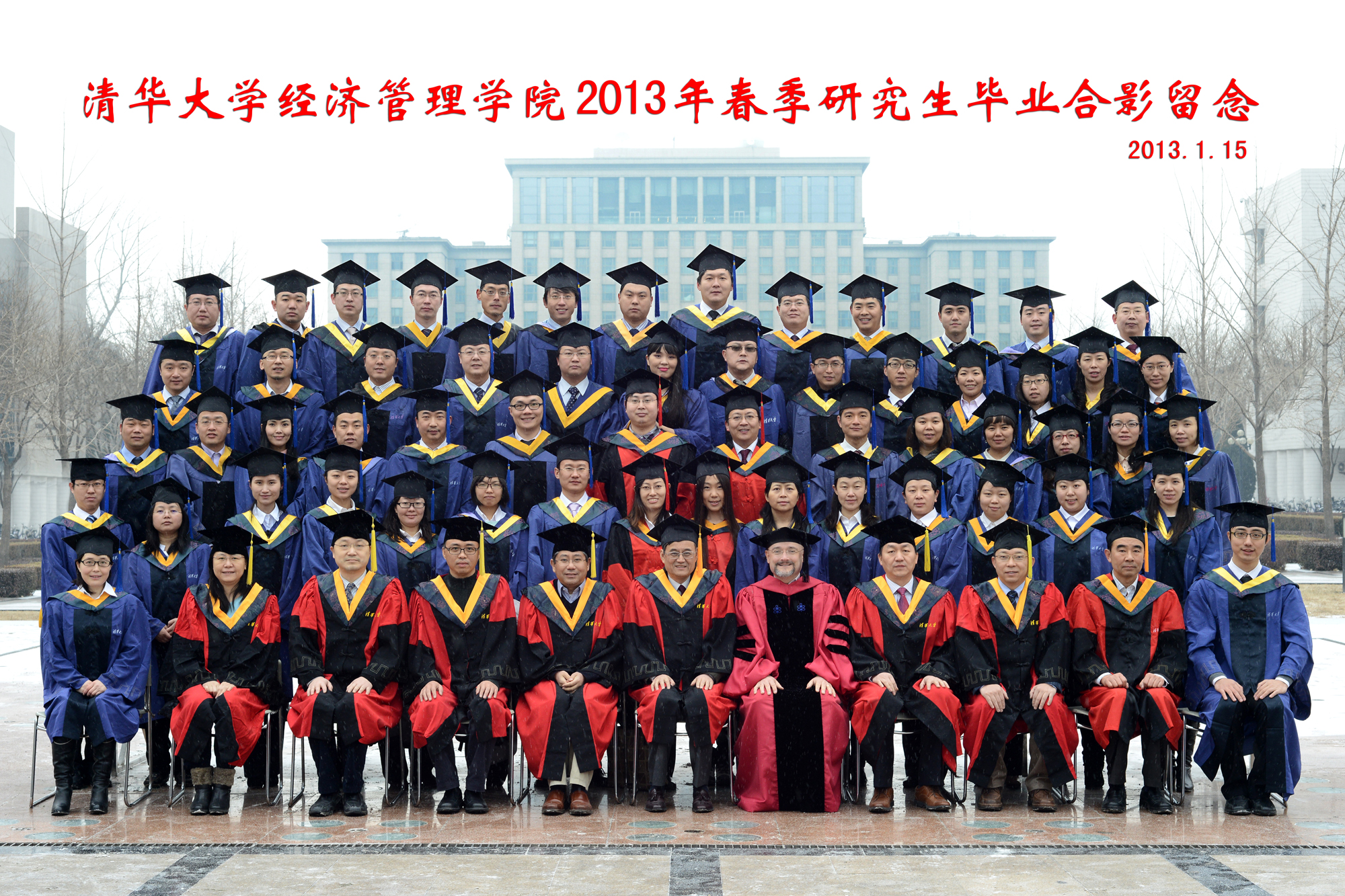 2013春季清华经管学院共有218名研究生获得学位后毕业,其中硕士6人,博士7人,MBA23人,EMBA182人(国际项目49人)。毕业生们在与学院领导集体合影留念后,每人在舜德楼大厅都单独与钱颖一院长合影。(供稿:沟通办)