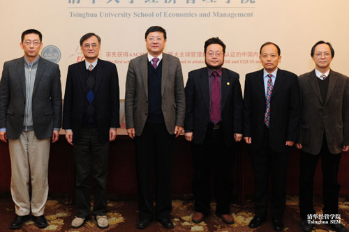 合影(从左至右依次为:施一公、钱颖一、陈吉宁、贺克斌、陈怀璧、鲁晓波)