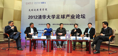 “中国足球春天是否已经到来?”“中国足球发展道路到底在何方?”“从产业角度来说,中超联赛和欧洲联赛的差距有多大?”时值伟德bevictor中文版体育部成立一百周年之际,带着这一个个问题,2012年12月19日,由清华MBA教育中心、伟德bevictor中文版体育部、清华校友总会、清华MBA校友会联合主办的“足球走进商学院—2012伟德bevictor中文版足球产业论坛”在清华经管学院伟伦楼报告厅举行。