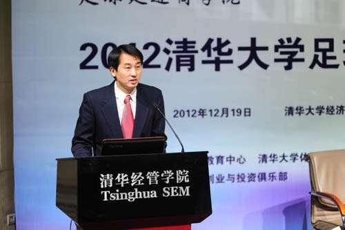 郦金梁教授在致辞中谈到,要加强包括足球在内的体育产业与商学院教育的结合,体育产业作为新兴朝阳产业在未来有广阔的发展空间,除了注重体制的创新外,亟待高素质的经营管理人才。清华MBA旨在培养具有综合管理能力的未来领导者,希望能够关注和推动产业的发展。我们期待中国足球摆脱目前的困境,取得长足的进步,成为我国体育职业化、市场化的一个亮点。也期望我们的MBA学子利用所学的知识并发挥管理技能,投身到中国的足球产业去发展。