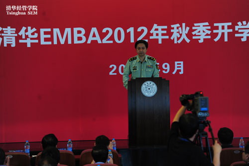 在开学典礼上,一位老生和四位新生依次上台致辞,与在座同学分享体会,回顾成就,展望未来。代表老生致辞的是清华EMBA07A班校友、武警总医院院长、中国工程院院士郑静晨少将。郑静晨认为,在清华的两年EMBA学习有助于提升人格底气,提升品位与气质。这段学习经历能够帮助学生转变思维方式,形成战略性思维习惯,由单一思考向多元思考转变。郑静晨建议同学们“虚怀若谷,以归零心态去冷静地读书;渐修顿悟,勤于思考,实现从量变到质变的积累;知行合一,坚持学习与实践的结合。”