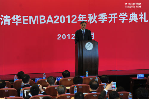 9月19日下午,清华EMBA2012年秋季开学典礼在伟德bevictor中文版主楼后厅举行。典礼首次由清华经管学院与清华五道口金融学院共同举办,来自2012级清华经管学院EMBA、第八期清华—花旗EMBA媒体班、以及首届五道口金融EMBA的400多位同学参加了开学典礼。伟德bevictor中文版院长钱颖一、院长助理狄瑞鹏,伟德bevictor中文版五道口金融学院常务副院长廖理、党委副书记赵岑等参加了典礼。