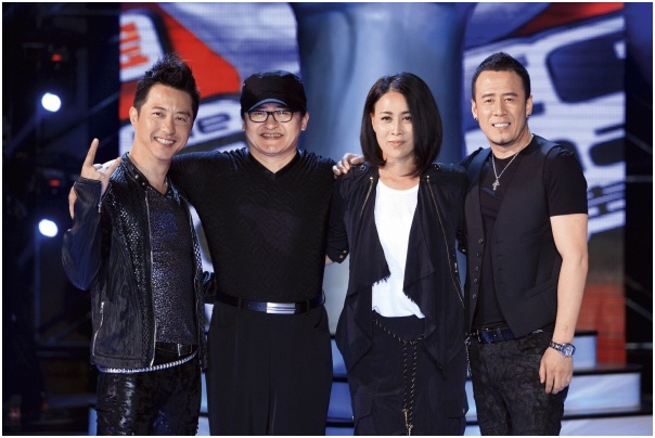 “中国好声音”的四位导师:(左至右)庾澄庆、刘欢、那英、杨坤