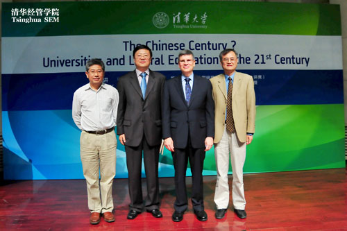合影(从左至右):白重恩副院长、陈吉宁校长、柯伟林教授、钱颖一院长