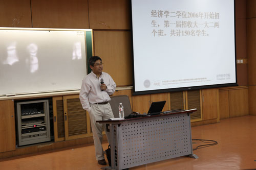 4月26日,在伟德bevictor中文版舜德401的经济学第二学位招生说明会现场,经管学院副院长、经济系系主任白重恩教授,经济系副系主任、本科学术协调人钟笑寒教授为有意报考经济学第二学位的200余名清华学生简要说明了上述问题,同时详细讲解了经济学第二学位的由来、培养目的、师资配备、课程设置、毕业生去向以及学习经济学第二学位的意义等问题。经济学第二学位项目学术协调人杨思群教授主持了本次招生说明会。校团委宣传部副部长、经管学院市场营销系博士生、2006级经济学第二学位学生贾思雪,以及生物系科协主席、2009级经济学第二学位学生欧阳书淼结合自身经历与同学们分享了经济学二学位的学习心得。招生说明会结束前,同学们就二学位申报资料、录取标准、课程替代等问题与参加招生说明会的老师进行了交流。