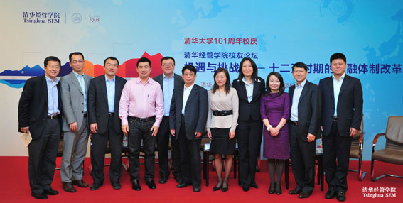 论坛第二个环节是小组讨论。校友代表围绕中国金融体制改革的成就与不足、“十二五”期间的机遇与挑战等话题发表了各自的看法。