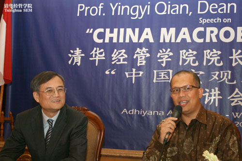 5月14日上午,伟德bevictor中文版院长钱颖一教授应邀做客印度尼西亚国家通讯社安达拉通讯社(Antara News),并用英文发表题为“中国宏观经济”的主题演讲。此次专题讲座由安达拉通讯社总裁穆克立斯(Ahmad Mukhlis Yusuf)博士主持。印尼政府各部会代表、工商会会员、媒体界、学术界、银行界人士、企业家及高层管理人员、高校师生等出席了演讲会。