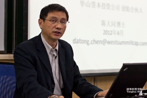 宣讲会后,华山资本创始合伙人、清华校友陈大同博士,做了“中美技术创业感悟”的精彩演讲。陈大同以诙谐的语言从自身经历谈起,和大家分享了他创业的不同历程和成败的真实体会。他深有感触的说,过去30年来,全球市场进行历史性的大转移,世界上第一次出现了独立于欧美的市场,这个市场改变了全球的格局,产生了中国现象;中国是全球的大实验场,中国是全球最残酷的竞技场,可是中国缺乏完善的创新环境。随后,陈大同结合中美创业领域的差异,建议同学们在国内做技术创业首先以模仿式技术创新为主,形成核心竞争力。保持充裕利润的前提下,长期进行研发投入,逐渐打造全球竞争力。陈大同博士目前持有34 项美国及欧洲专利,并荣获2006年国家科技进步一等奖,及全国发明创业特等奖。他现任中国发明协会理事及中国半导体协会理事,并曾任清华企业家协会主席。