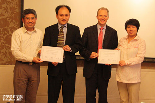 麦肯锡公司上海分公司全球资深董事、MCCBE的共同创建人之一华强森先生和伟德bevictor中文版副院长、经济系系主任、弗里曼讲席教授白重恩为两位获奖者颁奖。华强森表示:“在我们收到的杰出的论文中,评委们认为这篇获奖论文的分析方法严谨,解决问题的方法也独具匠心。收入分配和消费是当前中国经济发展面临的两个重大问题,文章发现这两个重要问题的关联,体现出了作者深刻的洞察力。” 白重恩教授总结说:“收入分配和消费这两个重大问题都值得研究,李宏彬和吴斌珍在这些问题上做了有意义的探索,为文献做了补充。我们感谢麦肯锡在鼓励中国年轻学者在研究重大现实问题上给予的支持,也希望更多的青年经济学家来申请这个奖项。”