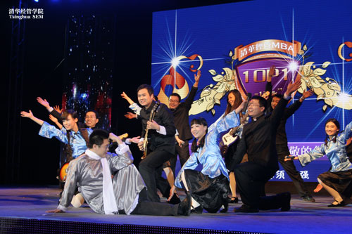 在“清华MBA2011年度十大新闻”的视频和由11F2班董春霞、秦丽峰、周银春、陈正男等同学带来的激情四射的舞蹈“We’re all in this together”中,晚会拉开帷幕!