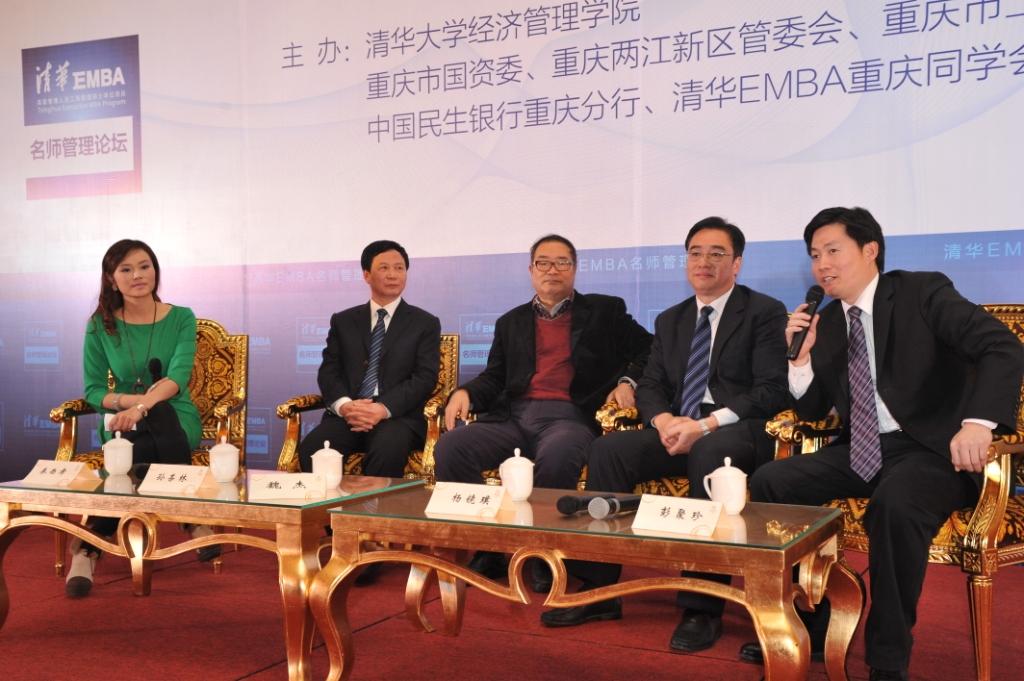 在主题对话环节中,魏杰教授还与清华EMBA校友、重庆航空股份有限公司党委书记彭聚珍,清华EMBA校友、重庆南方集团有限公司董事长孙甚林,重庆建工集团董事长杨镜璞又进一步对2012年房地产、金融业等热点问题进行了精彩的高峰对话。