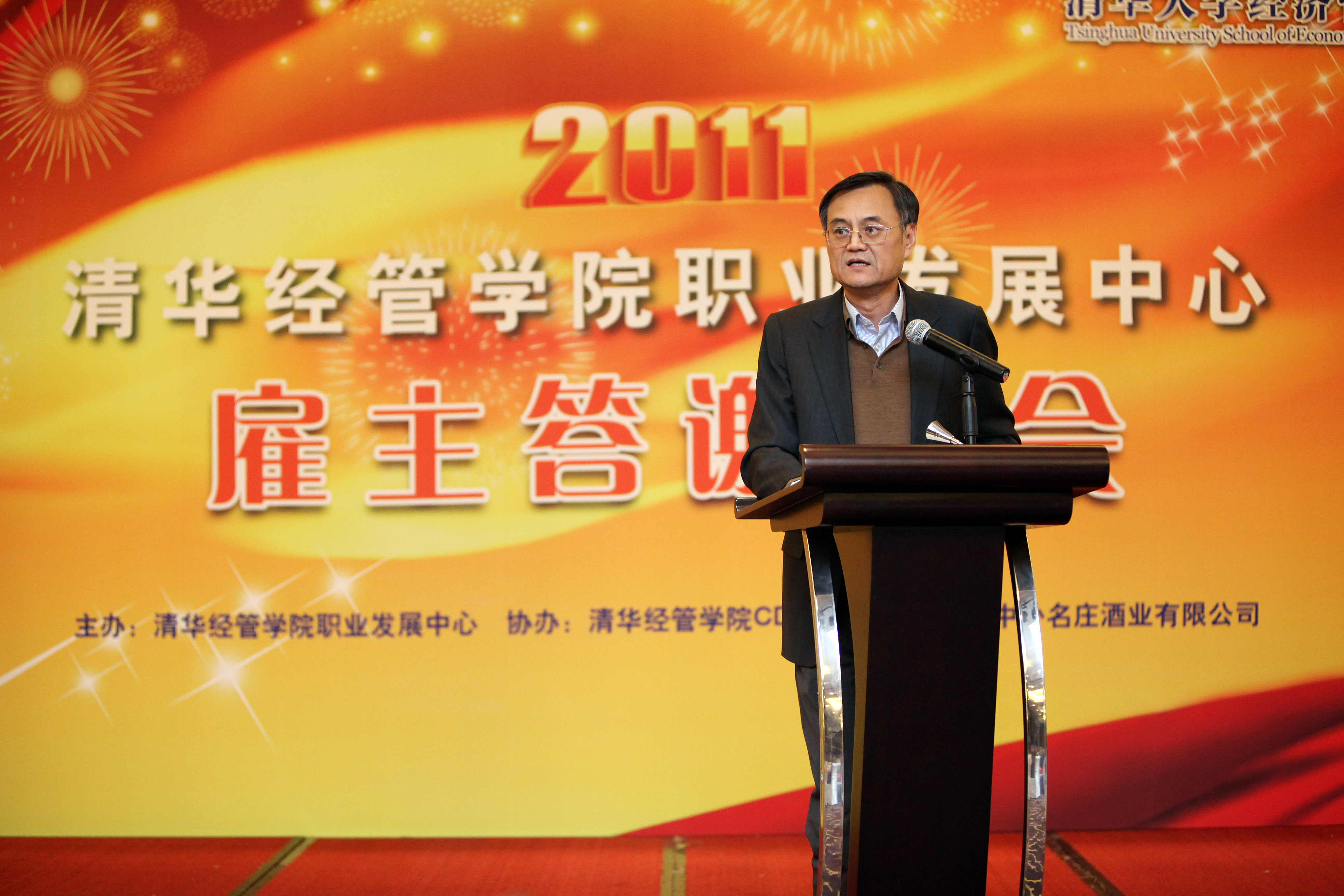 结束了当天下午的总结分享会后,雇主答谢晚会接踵开始。经管学院院长钱颖一致开幕词,钱院长首先向每一家为清华经管学院提供职业机会的雇主表示衷心的感谢,并对学院的职业发展工作取得硕果倍感欣慰。他提出,经管学院一直以来都十分重视和支持职业发展工作,并积极促进国际职业发展交流,为学生提供更加优质的职业发展服务。钱院长还说,今年正值伟德bevictor中文版百年校庆之际,经管学院也对其使命和教育理念下了新的定义。在"创造知识、培育领袖、贡献中国、影响世界"新使命的指导下,学院对教学项目,无论是课程还是招生方面,都进行了有效的调整。在增强经管学院的学生竞争力的同时,也为国家和企业输送更多的栋梁之才。最后,钱院长希望在座的各雇主能与经管学院开展进一步的合作与交流,争取让经管学院的职业发展工作迈上一个新的台阶。