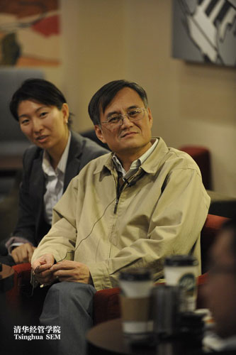 米色夹克衫,蓝色休闲裤,钱院长一身轻松的走进舜德楼咖啡厅。看到钱院长愉悦的表情,咖啡厅的气氛顿时活跃起来。钱院长首先请在座的同学一一自我介绍,接着他风趣的说“你们介绍了自己,也轮到我来说说我了,否则这就不公平了”。
