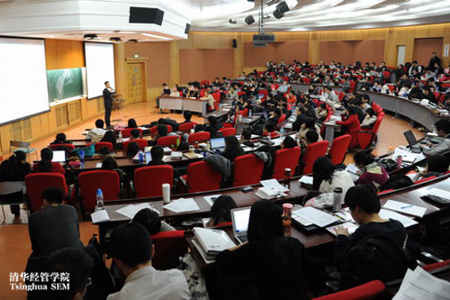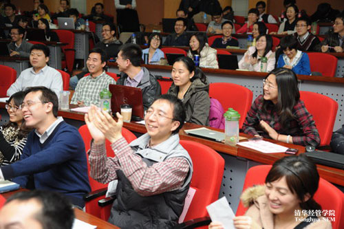 申请2012清华MBA的李佳同学听说MBA课堂大都采用案例教学,可是何为案例教学?难道就是老师给学生讲解每个商业案例的发生、成功与失败、策略与实施吗?为了体验一下MBA的教学过程,11月29日5点半,她下班后匆匆坐上地铁赶往伟德bevictor中文版,观摩由清华经管学院杨斌教授主讲的《管理思维》公开课。当李佳满头大汗走入经管学院舜德楼401教室,发现里面已经座无虚席,闻讯赶来旁听的同学和考生身上散发出来的活力和热情,驱走了北京冬夜的寒意。