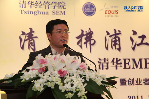 接下来,高捷资本管理有限公司合伙人刘中青也做了精彩演讲。刘中青是IDG前副总裁,参与并领导了数个在互联网、无线、新媒体和通讯领域的投资,并且对新能源、连锁服务以及数字电视等行业有比较深入地了解。对话环节中,朱武祥教授与两位清华EMBA校友——深圳金信诺高新技术股份有限公董事长黄昌华、上海晨光文具股份有限公司董事长陈湖文,以及上海容正投资咨询有限公司董事长郑培敏,共同探讨商业模式与创业融资、收购与兼并等话题。