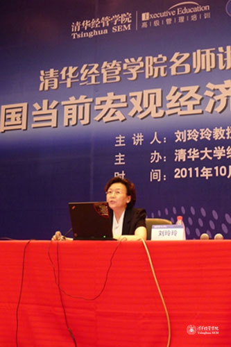 刘玲玲教授首先分析了当前通货膨胀及美欧主权债务危机的根源和发展趋势。她指出这些问题需要通过拉动消费、保持人民币增长灵活性以及借助稳健货币政策与积极财政政策三个方面来应对。谈到促进生产方式转型问题,她从产业政策、环境政策和区域政策三方面做了分析,其中涵盖了十二五经济发展的主要指标、中国鼓励产业创新的政策、能源安全与环境政策及主体功能区建设。针对广西当地情况,她肯定了广西旅游和生态建设以及新农村百村示范建设的成效,并解析了广西、北部湾的地位和未来的发展方向以及富民强桂、14+4产业体系等政策。