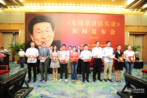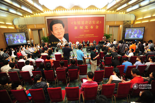 发布会首先播放了朱镕基院长于今年4月22日回到清华经管学院与师生交流的视频短片。在视频中,朱院长精神矍铄,以他惯有的坦诚语言给经管学院的师生们上了生动的一堂课。他告诫同学们在学校不仅要学习知识,更要学习做人;要实事求是,要讲真话。