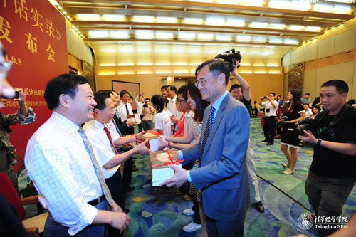 有幸参加此次发布会的清华经管学院学生们,手捧第一时间拿到的《朱镕基讲话实录》,久久不愿离去。学院研究生团总支书记、经博10班的李扬帆同学说,“自从今年四月份在学院听到朱院长的讲话后,就一直特别期待这套书的正式发行。通过这本书,我们应该培养自己对于国际和国内事务更深和更广层面的理解和认识,而不能只局限于教科书知识的学习。我一定会向朋友和家人推荐这本书,我相信任何人都会从中有所收获和感悟。”(供稿 沟通办)