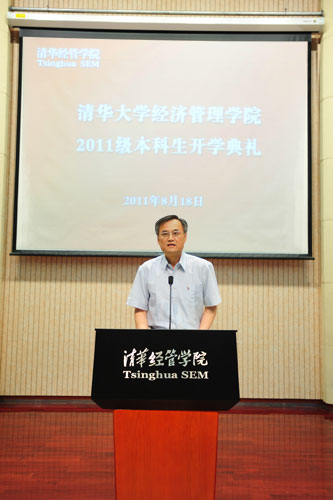 钱院长说,2011级同学是清华新百年的第一届本科生。同时还将见证2014年学院的三十年院庆。他期望同学们在学习方法上能实现转变和提升,从“解题”转向“读书”,并且通过“读书”而深入“思考”。最后,钱院长以“祝同学们的大学时代成为你们今后一生的新起点”作为致辞结语。