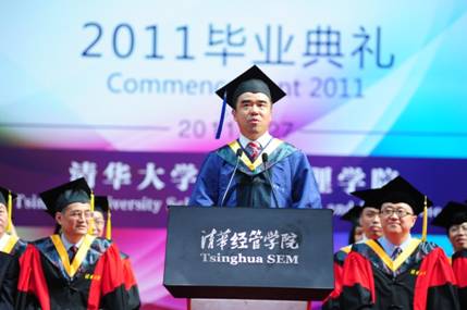 随后,EMBA09D班同学朱正东代表EMBA同学进行了发言。他表示:“清华EMBA是北洋产业领袖的最高殿堂,能够成为其中一员我深感荣幸。今天既是学业生涯的终点,又是杨帆远航的起点。我会禀承清华传统,弃而不舍,踏着先人的足迹永不停息,将清华的智慧融入到企业管理和生活中,脚踏实地作为一个上善若水的清华人,为社会创造更大的价值,承担更多的社会责任。”