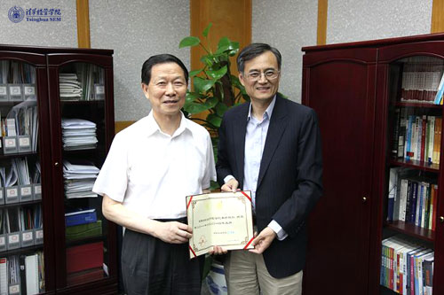 钱颖一院长向李荣融主任颁发兼职教授聘书