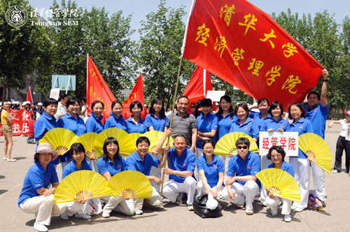 开幕式结束后,比赛的序幕正式拉开,在湛蓝的天空下,到处是矫健拼搏的身影。经管学院教师代表队共参加了跑、跳、投等27个项目的角逐。最终,财务办公室刘惠萍获得了女子立定跳远第三名、女子100米短跑第四名;金融MBA项目的郝秀清获得了女子800米第五名;常黎莎(EDP中心)、刘惠萍(财务办)、李莉(EMBA教育中心)、郝秀清(金融MBA项目)四人还在女子4x100米接力赛中获得第七名。在最后的集体项目迎面接力赛中,虽然经管学院代表队参赛男队员少于规定人数,在人员构成上处于劣势,但大家在赛道上仍旧显示出饱满的热情,不畏艰辛,奋勇拼搏,最终获得了小组第四名,充分展示了经管学院的风采本色。全部比赛结束后,赛场上充满了欢声笑语,体育比赛拉近了同事间的距离,运动精神增强了同事间的感情,大家携手相约:明年赛场上再相见!(供稿学院工会编辑沟通办)