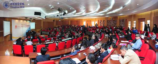 4月23日,作为清华百年校庆系列活动之一,以“开局‘十二五’,投资驱动的新经济热潮”为主题的值年校友论坛在经管学院舜德楼401室举行。经1986级韩庆校友(重庆跨越集团总裁)主持论坛,吸引了众多返校校友和在校生参与,舜德401座无虚席,气氛温馨而热烈。
