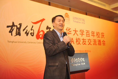 清华经管学院院长助理高建教授首先致辞,他代表学院欢迎校友们在百年校庆之际回到学院,并感谢校友们对学院和MBA项目发展的关心和支持。他说,学院非常重视校友工作,近期,学院院务会全体成员在上海参加了长三角校友日活动,在深圳参加了珠三角校友日活动,并在北京参加了北京校友日活动。校友们踊跃参加,反响强烈。学院今后每年将在北京、上海、深圳和一个其他城市举办校友日活动。清华MBA校友与学院项目保持紧密联系,以各种形式支持清华MBA项目以及学院发展:多年来共有400多名MBA校友参与校友导师计划,为学生提供职业发展和成长经验;校友企业参与整合实践项目,为学生提供企业考察交流和实习机会;校友以担任企业家班主任的形式配合MBA项目改革,对学生培养要求的不断提高,强化了MBA学生毕业后的社会竞争力和影响力。最后,高建教授祝愿校友们在各自领域取得更大的成绩。