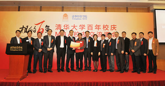 捐赠仪式后,MBA教育中心常务副主任毛东辉老师介绍了筹备成立“清华MBA校友会”的情况,她回顾了MBA校友会理事会的筹备过程,并介绍了MBA校友的所在地区、行业分布情况。酒会现场,近20名高年级清华MBA校友上台签名,共同启动清华MBA校友会的筹备工作。筹备中的清华MBA校友会理事会将是MBA校友会的核心管理机构,MBA校友理事会将秉承“分享•传承•共赢”的理念,搭建一个校友交流的平台,更好地服务校友,促进校友之间、校友与学校及学院之间的交流,并为学院的发展献计献策。