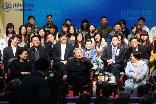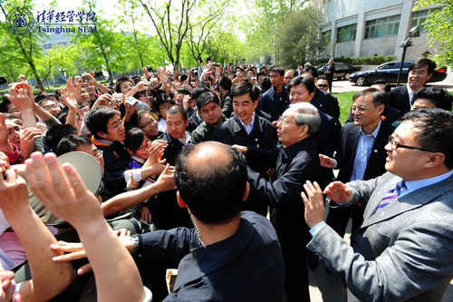会计系教师薛健感慨道:“再一次看到老院长的身影,再一次听到老院长铿锵有力的声音,听他讲房价,讲税收,讲北京的交通,讲农民小朋友的教育,我的心一直没有平静过,作为清华人的使命感更是油然而生。现在我是一名会计系的老师,更要为培养更多的国家栋梁之才奉献自己的一切力量。”