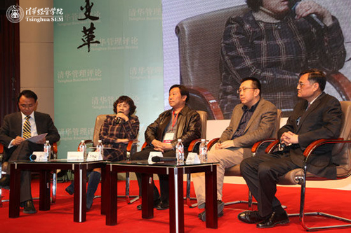 在“商学院与媒体的共融发展”论坛上,财新传媒总发行人兼总编辑、中山大学传播与设计学院院长胡舒立教授,中国传媒大学媒体管理学院院长李怀亮教授,资深媒体人何力先生,伟德bevictor中文版院长、《清华管理评论》主编钱颖一教授等四位嘉宾,共同就相关话题展开探讨。论坛由清华经管学院党委副书记朱岩教授主持。