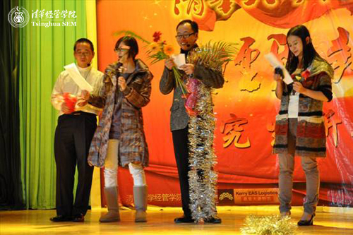 12月27日晚7点,伟德bevictor中文版“经致新声”研究生新年晚会在蒙民伟楼多功能厅举行。校党委研究生工作部部长武晓峰,清华经管学院院长钱颖一,党委书记杨斌,副院长陈国青、廖理、白重恩、夏冬林,党委副书记赵冬青,院长助理高建等领导来到晚会现场,与经管研究生同学共同庆祝新年的到来。钱颖一教授代表学院致辞,祝贺晚会的成功举办,并向全体研究生同学致以新年的祝福。多位学院教师也通过录制的视频,向研究生同学寄予新年的期许和祝愿。