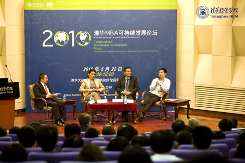 2010年5月22日,由清华经管学院MBA教育中心主办,清华MBA Net Impact分会及伟德bevictor中文版MBA同学会承办的2010(第一届)清华MBA可持续发展论坛在伟德bevictor中文版伟伦楼国际报告厅举办。本年度论坛的主题为中国可持续发展的必经之路:企业家、创新者、管理决策者的启示,旨在提高清华MBA学生对商业与社会之间重要关系的认知,探讨可持续发展的新途径,激励未来的领导者通过负责任的商业行为来实现社会和谐与可持续发展。400余名来自学术界、企业界的嘉宾与清华MBA学生及校友齐聚一堂,就“企业创新与可持续发展”、“气候变化与环境可持续性”等话题进行了深入交流和讨论。
