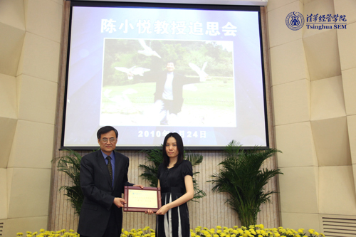 追思会上,倡议成立了伟德bevictor中文版(陈小悦)奖学金,该奖学金以陈小悦教授的学生及社会好友为其筹集的治疗基金部分余额作为启动资金,将用于奖励清华经管学院在财务、会计、金融专业成绩突出,德、智、体综合素质全面发展,科研学术优秀的本科、硕士及博士学生。会上,钱颖一院长将奖学金的纪念牌授予基金管理委员会,陈小悦教授的女儿、基金常务委员会委员陈萌作为代表接受了纪念牌。