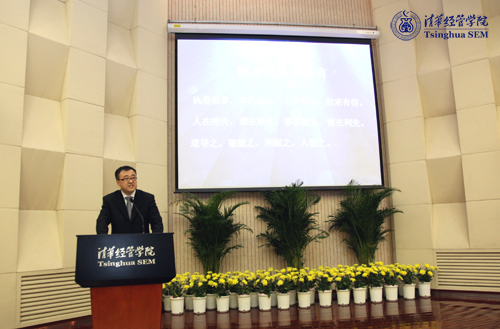 清华经管学院院长钱颖一教授代表学院讲话,他充分肯定了陈小悦教授对清华经管学院的贡献,并将他在清华会计系建设及会计学领域教育方面所做的工作进行了总结。钱颖一院长说,正是有了陈小悦教授这样好的一位带头人,现在的会计系才能在学科发展和人才培养方面走在国内领先的位置,并且依托学院整体的优势,会计专业成为了国内第一个通过AACSB国际认证的专业,这和陈小悦教授工作中的贡献是分不开的。
