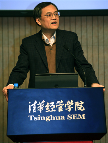 随后,钱颖一院长发表了“院情报告”(State of the School)。他向全院教师和职员报告了学院的各教学项目的发展情况、教师队伍建设和研究成果情况、职员队伍规模变化、以及学院财务状况。钱院长通过引用过去五年的相关数据,分析了上述各方面的变化原因和发展趋势,并由此对目前的院情形势作出了整体判断。他指出,学院的各教学项目是有竞争力的,教师队伍的发展节奏和职员队伍的规模控制是适当的,教师科研成果的发展势头是好的,学院的财务状况是健康的、扎实的。他还特别列举了2009年学院推出的若干项重大措施,强调学院的工作不仅着眼于当前,而且也面向未来。比如,在过去的一年,学院推出了新的本科生培养方案,全面实施了新版MBA,规划并启动了信息系统战略,以及系统性地开展了学院文化建设。这些措施无疑都对学院的长远发展具有重大意义。