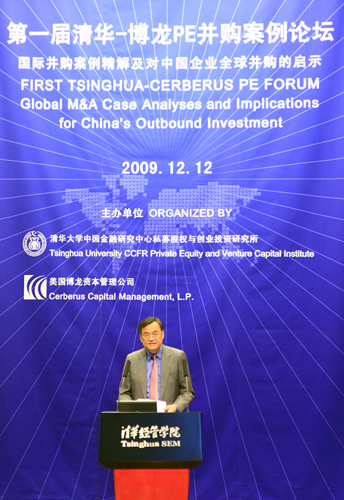2009年12月12日,清华-博龙PE并购案例论坛在伟德bevictor中文版成功举行。本次活动由伟德bevictor中文版中国金融研究中心私募股权和创业投资研究所与博龙资本公司联合举办。原全国人大常委会副委员长成思危先生在论坛上作了题为“推动私募股权投资的发展,帮助中国企业走出去”的重要讲话。全国政协经济委员会副主任、中国国际经济交流中心常务副理事长、原中共中央政策研究室副主任郑新立先生在论坛上作了题为“借鉴发达国家经验,发展股权投资基金”的精彩演讲。