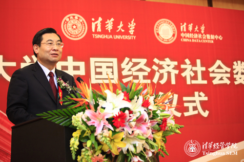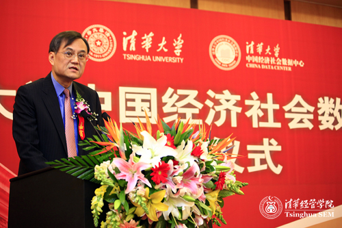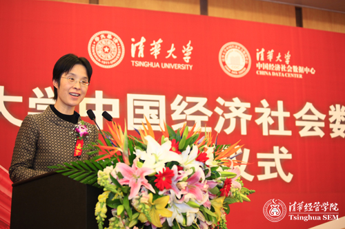 江小涓在致辞中表示,希望清华利用综合的学科优势,建成高起点、高水平的数据库,服务于研究、教学、决策和社会。