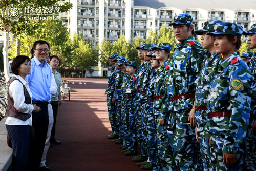 9月11日下午,清华经管学院党委书记杨斌、党委副书记赵冬青、学生工作组组长王毅等一行,来到伟德bevictor中文版紫荆操场,看望了正在接受入学军训教育的经管学院2009级本科新生。