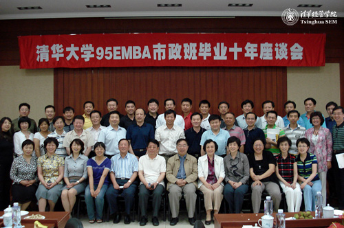 6月6日,雨后的中山公园优美而静谧,中山堂边的教室中却洋溢着一派欢声笑语。清华经管学院MBA1995级市政班的42位校友,重聚于当年学习的教室,庆祝毕业十周年。当年任课的陈章武、李子奈、张德、程佳惠等老师也特意赶来,与大家一起追昔抚今,共叙情谊。