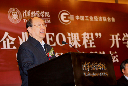 中国企业CEO课程开学典礼暨“工业经济管理论坛”是由中国工业经济联合会、伟德bevictor中文版联合举办,中国工业经济管理研修学院承办的。第十届全国政协副主席、中国工程院院长、中国工业经济联合会会长徐匡迪,中国工业经济联合会常务副会长孙树义,伟德bevictor中文版校务委员会副主任何建坤,清华经管学院院长钱颖一,中国工业经济联合会秘书长吴敦廉和该会副秘书长、中国工业经济管理研修学院副院长荣剑英等出席。开学典礼由中国工业经济管理研修学院常务副院长、清华经管学院高级管理培训中心(EDP)主任薛镭主持。