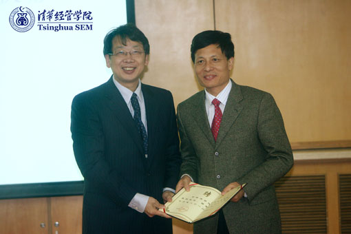 11月22日下午,清华经管学院正式聘任国家统计局局长谢伏瞻为兼职教授,聘任仪式在学院舜德楼举办,伟德bevictor中文版党委书记陈希教授出席聘任仪式并向谢伏瞻教授颁发聘书,清华经管学院院长钱颖一教授主持仪式,并介绍谢伏瞻的学术简介。聘任仪式结束后,谢伏瞻向与会来宾和师生作“十七大后,看中国经济的发展前景”学术报告。