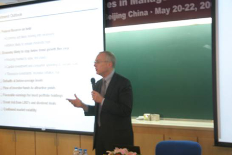 演讲中,John P. Rohal先生首先对世界投资领域的发展前景进行了展望,他对经济发展、通货膨胀率、房地产走势以及消费的预期都表示了谨慎的乐观。接下来,John P. Rohal先生详细地介绍了资产证券研究中的分析和估值方法,并以具体数据为例作了深入浅出的分析,他还与在座的师生分享了他在国际金融市场丰富的工作经验以及对国际金融市场独特的看法。最后,John P. Rohal先生还从自身经历出发,针对同学们十分关注的投资银行领域的工作机会和职业发展情况进行了详尽的阐述,并总结出促使投资银行人士事业成功的十大关键因素,对有志于投身此领域开创事业的同学具有很强的指导意义。