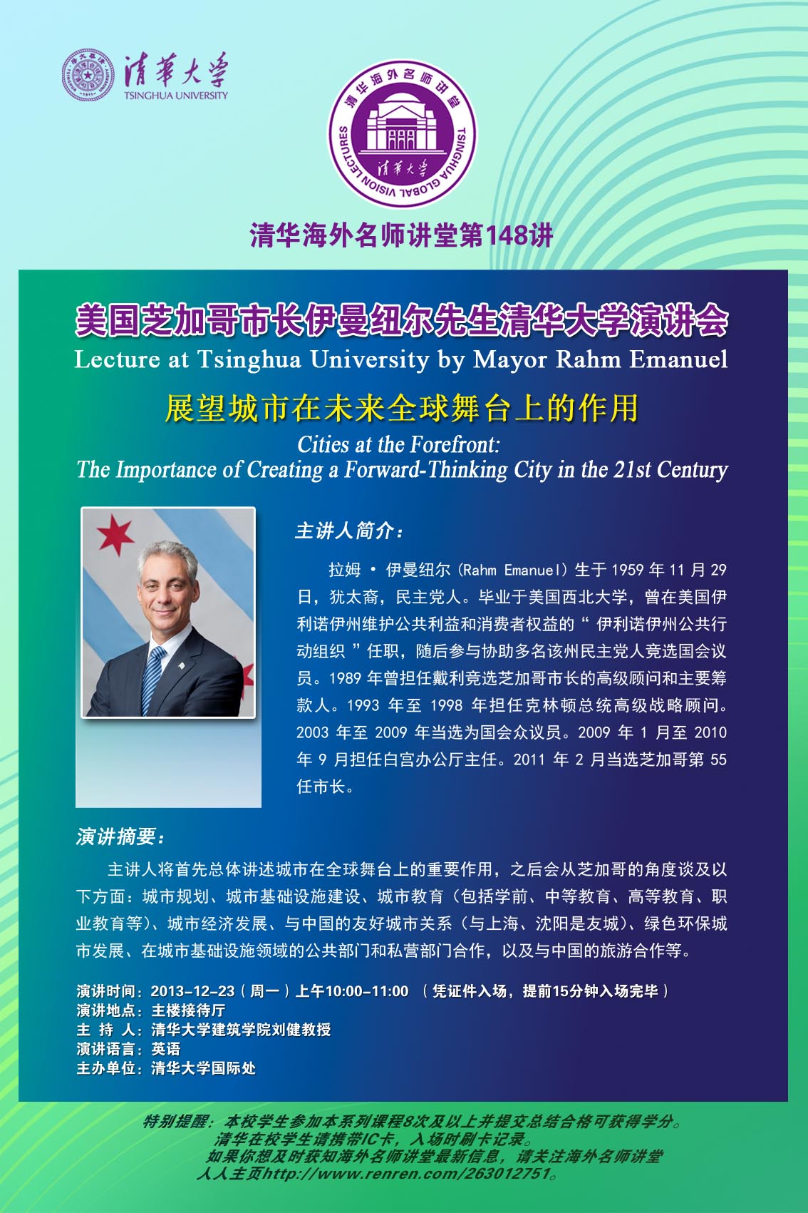美国芝加哥市长拉姆•伊曼纽尔:展望城市在未来全球舞台上的作用