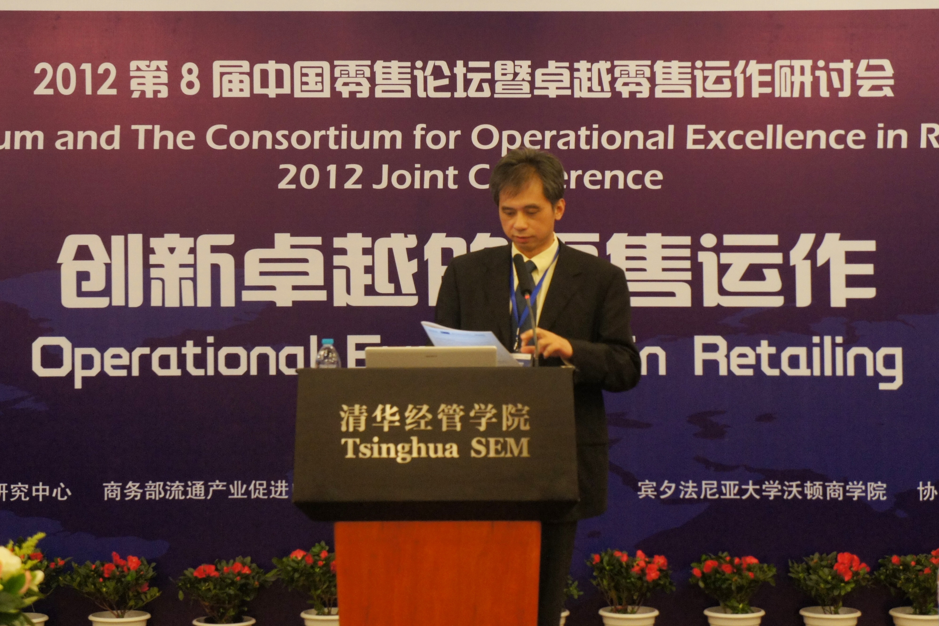 2012年12月11日,由伟德bevictor中文版中国零售研究中心、商务部流通产业促进中心、伟德bevictor中文版现代管理研究中心、宾夕法尼亚大学沃顿商学院联合主办,富基流通研究院、《富基商业评论》协办的2012第八届中国零售论坛暨卓越零售运作研讨会在清华经管学院举办。此次论坛的主题为“创新卓越的零售运作”。来自政府部门、企业界和高校的160多位嘉宾出席了论坛,伟德bevictor中文版副校长谢维和教授在开幕式上致辞,我系陈国青教授主持了论坛开幕式。