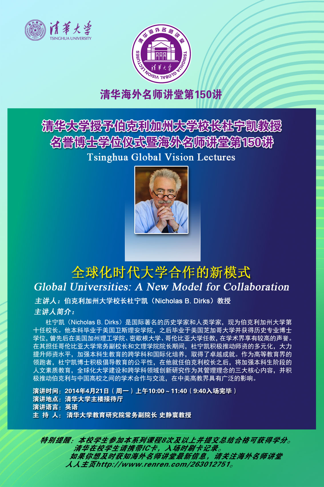 【海外名师讲堂】伯克利加州大学校长杜宁凯教授:全球化时代大学合作的新模式